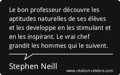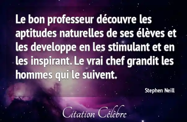 Le bon professeur découvre les aptitudes naturelles de ses élèves et les developpe en les stimulant et en les inspirant. Le vrai chef grandit les hommes qui le suivent.