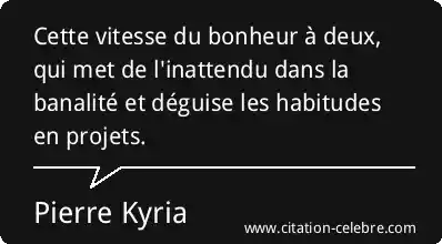 Cette vitesse du bonheur à deux, qui met de l'inattendu dans la banalité et déguise les habitudes en projets.
