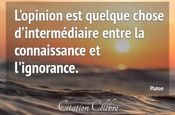 Citation Platon chose : L'opinion est quelque chose d'intermédiaire entre la connaissance et l'ignorance....