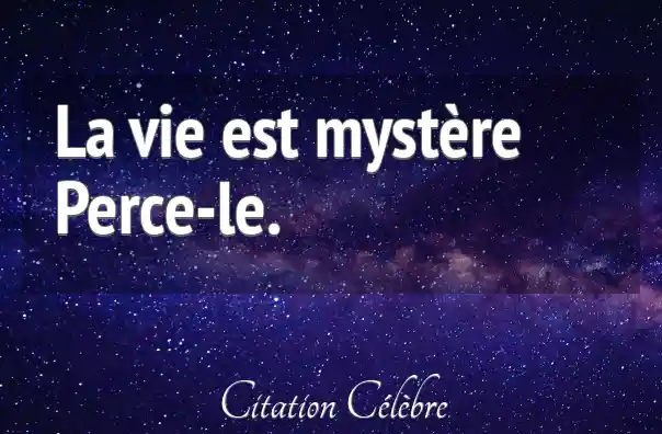 La vie est mystère Perce-le.