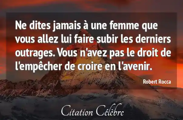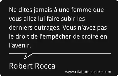 Ne dites jamais à une femme que vous allez lui faire subir les derniers outrages. Vous n'avez pas le droit de l'empêcher de croire en l'avenir.