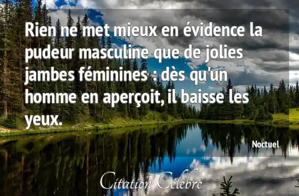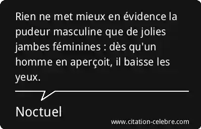 Rien ne met mieux en évidence la pudeur masculine que de jolies jambes féminines : dès qu'un homme en aperçoit, il baisse les yeux.