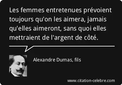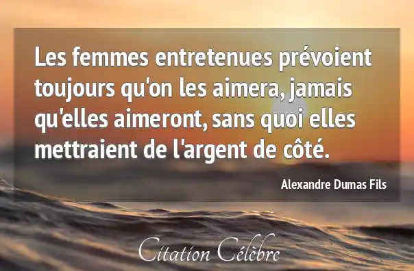 Les femmes entretenues prévoient toujours qu'on les aimera, jamais qu'elles aimeront, sans quoi elles mettraient de l'argent de côté.