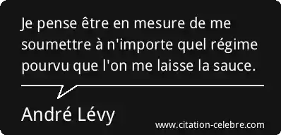 Je pense être en mesure de me soumettre à n'importe quel régime pourvu que l'on me laisse la sauce.