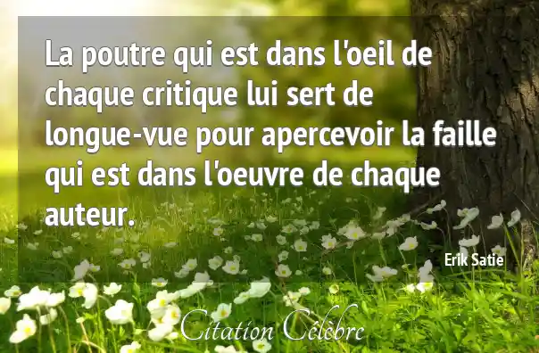 La poutre qui est dans l'oeil de chaque critique lui sert de longue-vue pour apercevoir la faille qui est dans l'oeuvre de chaque auteur.