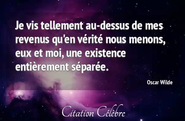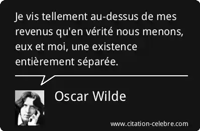 Je vis tellement au-dessus de mes revenus qu'en vérité nous menons, eux et moi, une existence entièrement séparée.