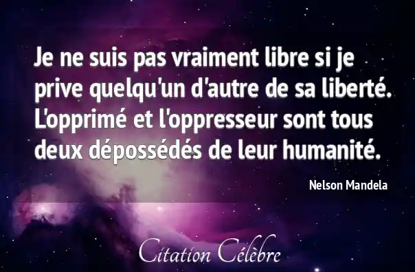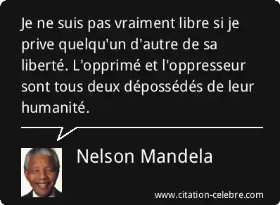 Je ne suis pas vraiment libre si je prive quelqu'un d'autre de sa liberté. L'opprimé et l'oppresseur sont tous deux dépossédés de leur humanité.