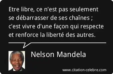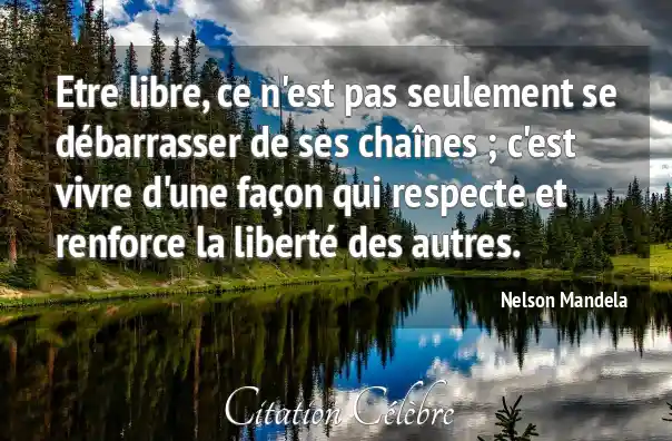 Etre libre, ce n'est pas seulement se débarrasser de ses chaînes ; c'est vivre d'une façon qui respecte et renforce la liberté des autres.