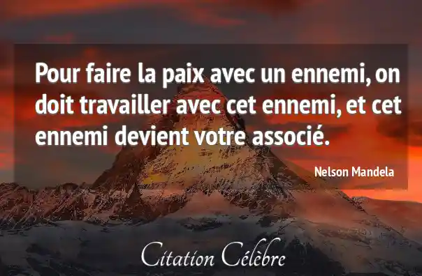Pour faire la paix avec un ennemi, on doit travailler avec cet ennemi, et cet ennemi devient votre associé.