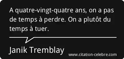 A quatre-vingt-quatre ans, on a pas de temps à perdre. On a plutôt du temps à tuer.