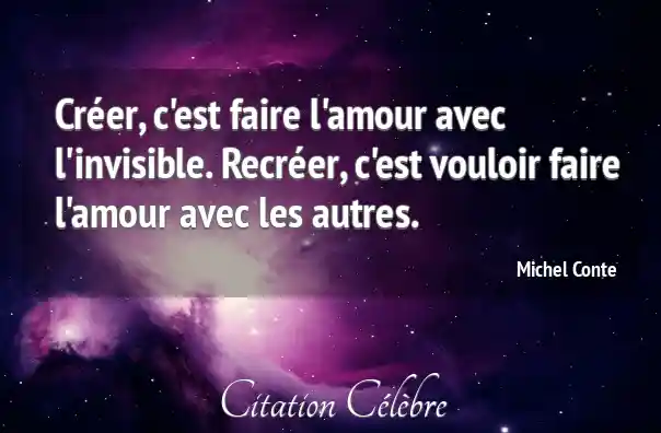 Créer, c'est faire l'amour avec l'invisible. Recréer, c'est vouloir faire l'amour avec les autres.