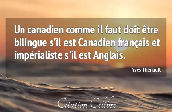 Un canadien comme il faut doit être bilingue s'il est Canadien français et impérialiste s'il est Anglais.