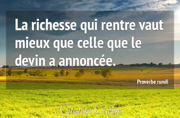 La richesse qui rentre vaut mieux que celle que le devin a annoncée.