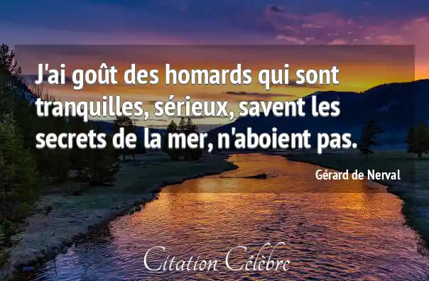J'ai goût des homards qui sont tranquilles, sérieux, savent les secrets de la mer, n'aboient pas.