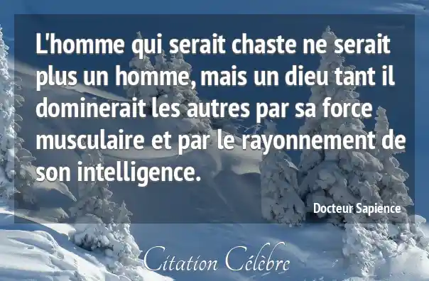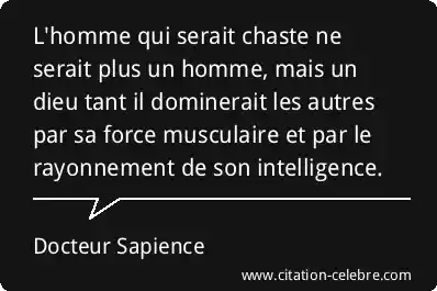 L'homme qui serait chaste ne serait plus un homme, mais un dieu tant il dominerait les autres par sa force musculaire et par le rayonnement de son intelligence.