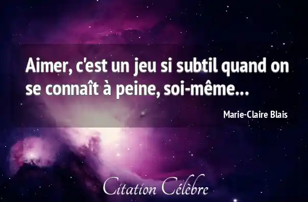 Citation Marie-Claire Blais aimer : Aimer, c'est un jeu si subtil quand on se connaît...