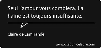 Seul l'amour vous comblera. La haine est toujours insuffisante.