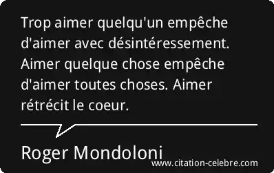 Trop aimer quelqu'un empêche d'aimer avec désintéressement. Aimer quelque chose empêche d'aimer toutes choses. Aimer rétrécit le coeur.