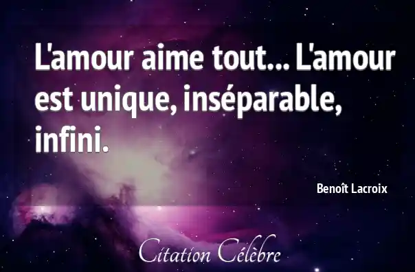 L'amour aime tout... L'amour est unique, inséparable, infini.