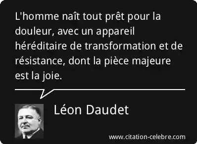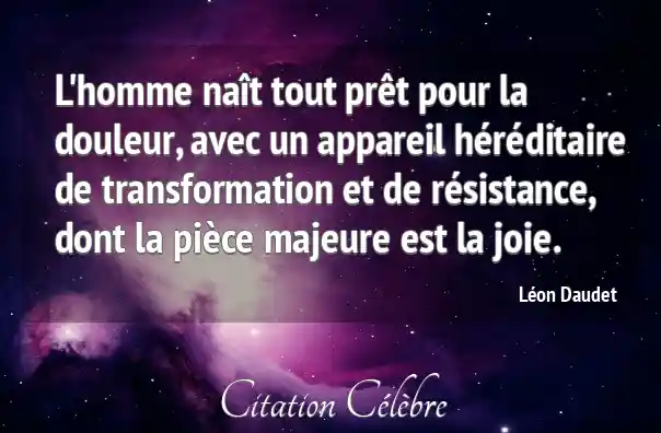 L'homme naît tout prêt pour la douleur, avec un appareil héréditaire de transformation et de résistance, dont la pièce majeure est la joie.