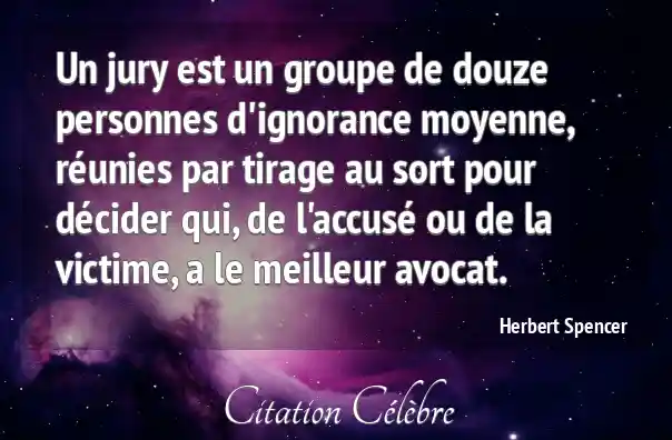 Un jury est un groupe de douze personnes d'ignorance moyenne, réunies par tirage au sort pour décider qui, de l'accusé ou de la victime, a le meilleur avocat.
