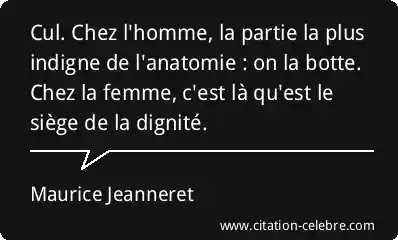 Cul. Chez l'homme, la partie la plus indigne de l'anatomie : on la botte. Chez la femme, c'est là qu'est le siège de la dignité.