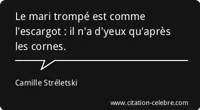 Le mari trompé est comme l'escargot : il n'a d'yeux qu'après les cornes.