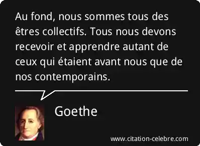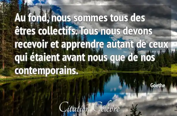 Au fond, nous sommes tous des êtres collectifs. Tous nous devons recevoir et apprendre autant de ceux qui étaient avant nous que de nos contemporains.