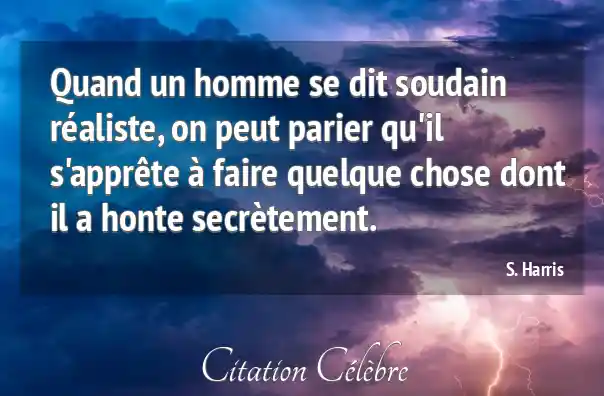 Quand un homme se dit soudain réaliste, on peut parier qu'il s'apprête à faire quelque chose dont il a honte secrètement.