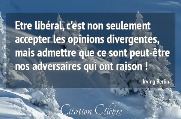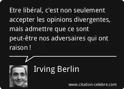 Etre libéral, c'est non seulement accepter les opinions divergentes, mais admettre que ce sont peut-être nos adversaires qui ont raison !
