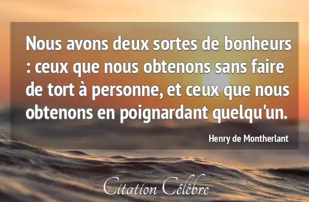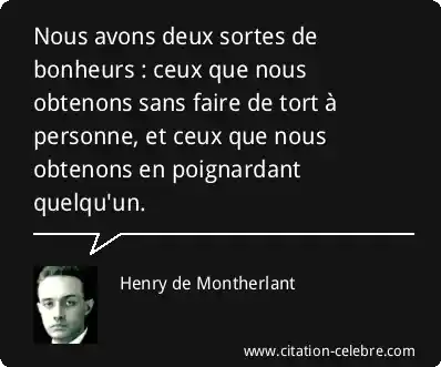 Nous avons deux sortes de bonheurs : ceux que nous obtenons sans faire de tort à personne, et ceux que nous obtenons en poignardant quelqu'un.