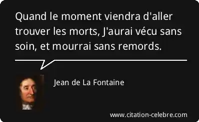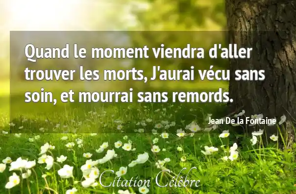Quand le moment viendra d'aller trouver les morts, J'aurai vécu sans soin, et mourrai sans remords.