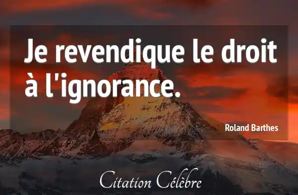 Je revendique le droit à l'ignorance.