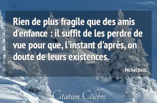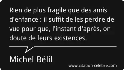Rien de plus fragile que des amis d'enfance : il suffit de les perdre de vue pour que, l'instant d'après, on doute de leurs existences.
