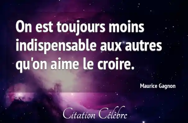 On est toujours moins indispensable aux autres qu'on aime le croire.
