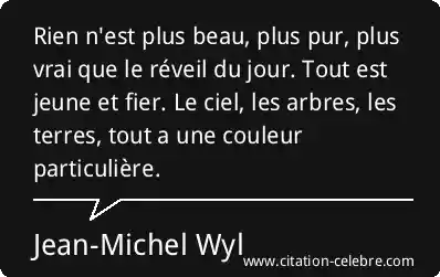Rien n'est plus beau, plus pur, plus vrai que le réveil du jour. Tout est jeune et fier. Le ciel, les arbres, les terres, tout a une couleur particulière.