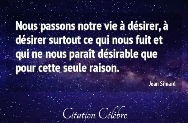 Nous passons notre vie à désirer, à désirer surtout ce qui nous fuit et qui ne nous paraît désirable que pour cette seule raison.