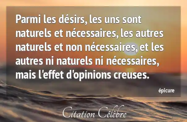 Parmi les désirs, les uns sont naturels et nécessaires, les autres naturels et non nécessaires, et les autres ni naturels ni nécessaires, mais l'effet d'opinions creuses.