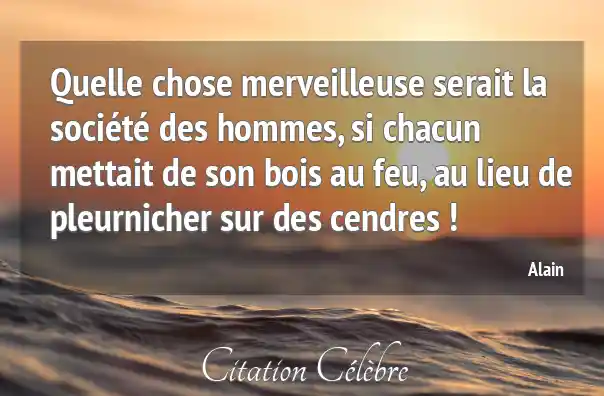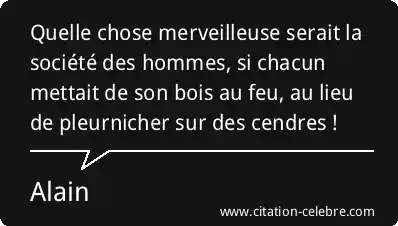 Quelle chose merveilleuse serait la société des hommes, si chacun mettait de son bois au feu, au lieu de pleurnicher sur des cendres !