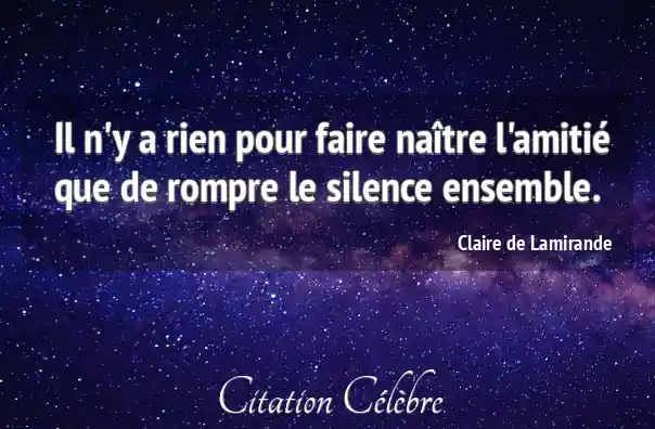 Il n'y a rien pour faire naître l'amitié que de rompre le silence ensemble.