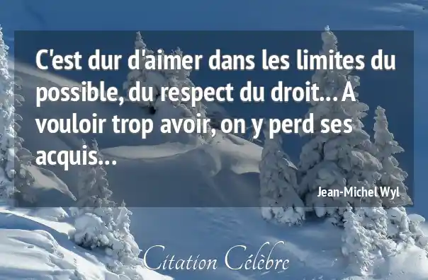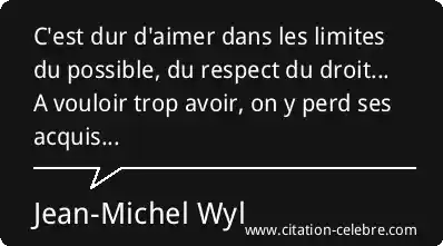 C'est dur d'aimer dans les limites du possible, du respect du droit... A vouloir trop avoir, on y perd ses acquis...