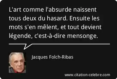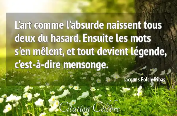 L'art comme l'absurde naissent tous deux du hasard. Ensuite les mots s'en mêlent, et tout devient légende, c'est-à-dire mensonge.
