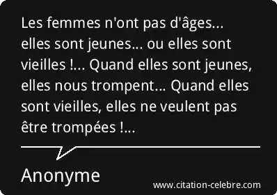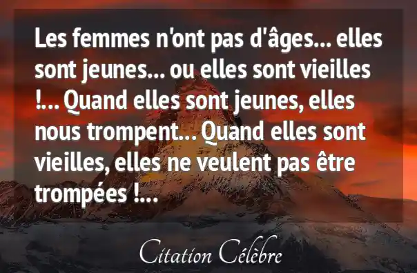 Les femmes n'ont pas d'âges... elles sont jeunes... ou elles sont vieilles !... Quand elles sont jeunes, elles nous trompent... Quand elles sont vieilles, elles ne veulent pas être trompées !...