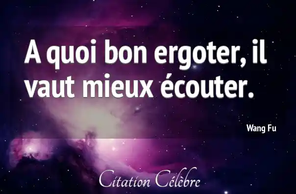 A quoi bon ergoter, il vaut mieux écouter.