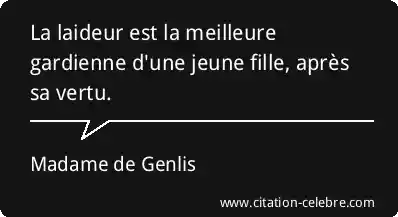 La laideur est la meilleure gardienne d'une jeune fille, après sa vertu.
