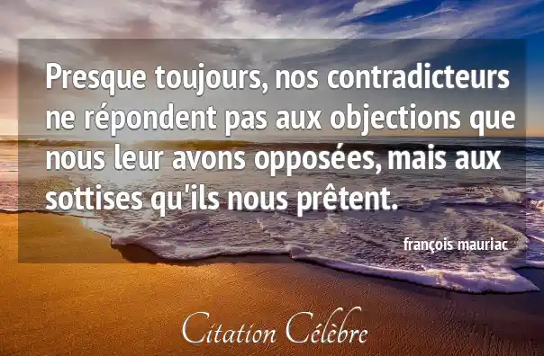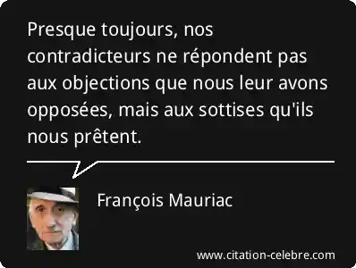 Presque toujours, nos contradicteurs ne répondent pas aux objections que nous leur avons opposées, mais aux sottises qu'ils nous prêtent.