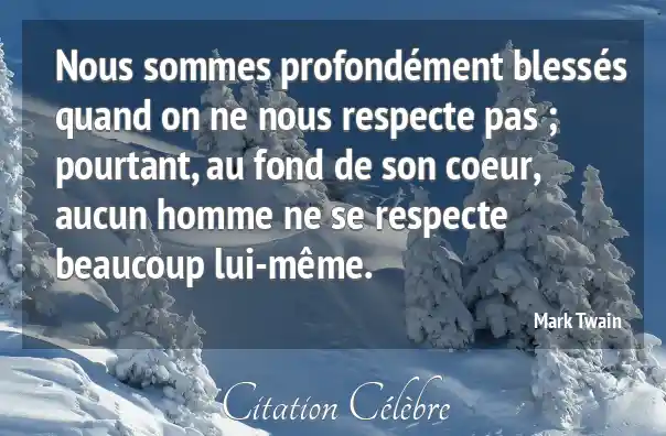 Nous sommes profondément blessés quand on ne nous respecte pas ; pourtant, au fond de son coeur, aucun homme ne se respecte beaucoup lui-même.