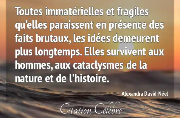 Toutes immatérielles et fragiles qu'elles paraissent en présence des faits brutaux, les idées demeurent plus longtemps. Elles survivent aux hommes, aux cataclysmes de la nature et de l'histoire.