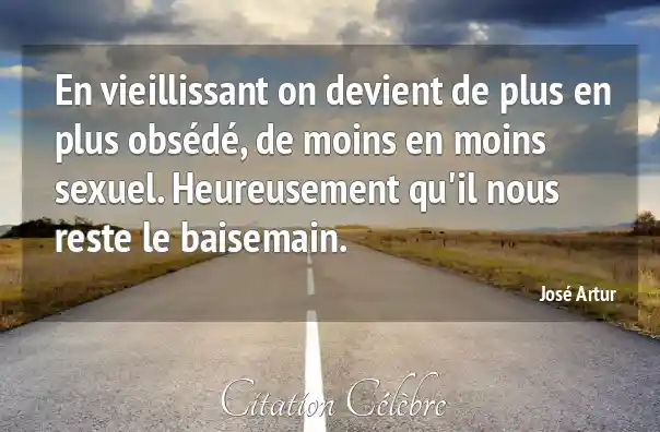 En vieillissant on devient de plus en plus obsédé, de moins en moins sexuel. Heureusement qu'il nous reste le baisemain.