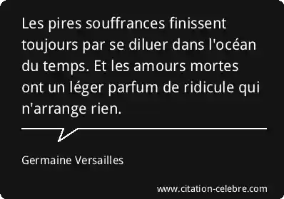 Les pires souffrances finissent toujours par se diluer dans l'océan du temps. Et les amours mortes ont un léger parfum de ridicule qui n'arrange rien.